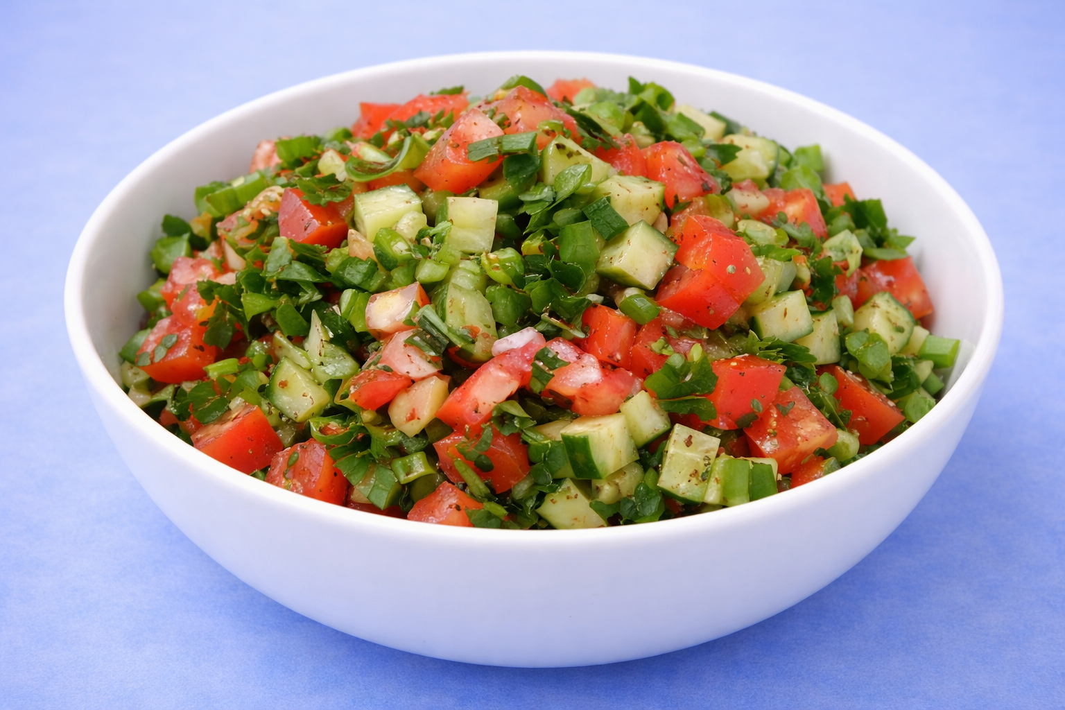- Chop the cucumber and tomato into small chunks.