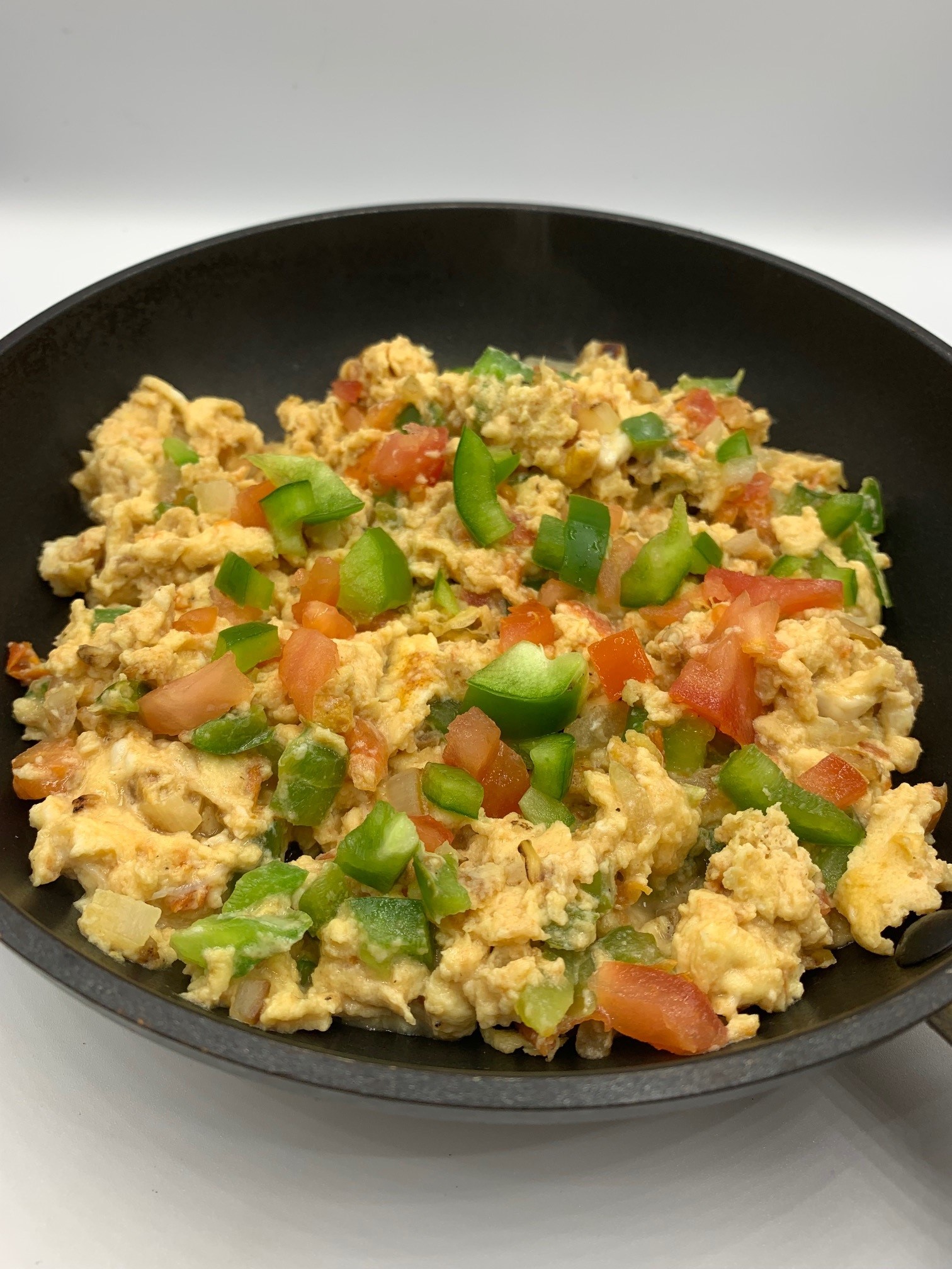 - Add the tomato and pepper. Cook until soft, approximately 8-10 minutes.