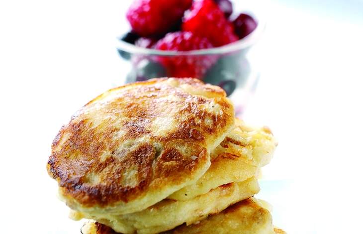 Try banana and blueberry pancakes by using 125g white flour, 125g wholemeal flour instead of the white flour and muesli mix. Then thinly slice 1 large banana and fold into the batter with the egg whites and cook as above and serve with 300g blueberries.