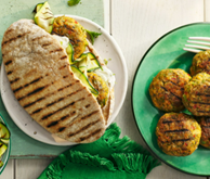 - Optional – to serve, toast the pitta and split down one side. Shred the lettuce. Stuff the pitta with the falafel and shredded lettuce and serve with natural yogurt or tzatziki.